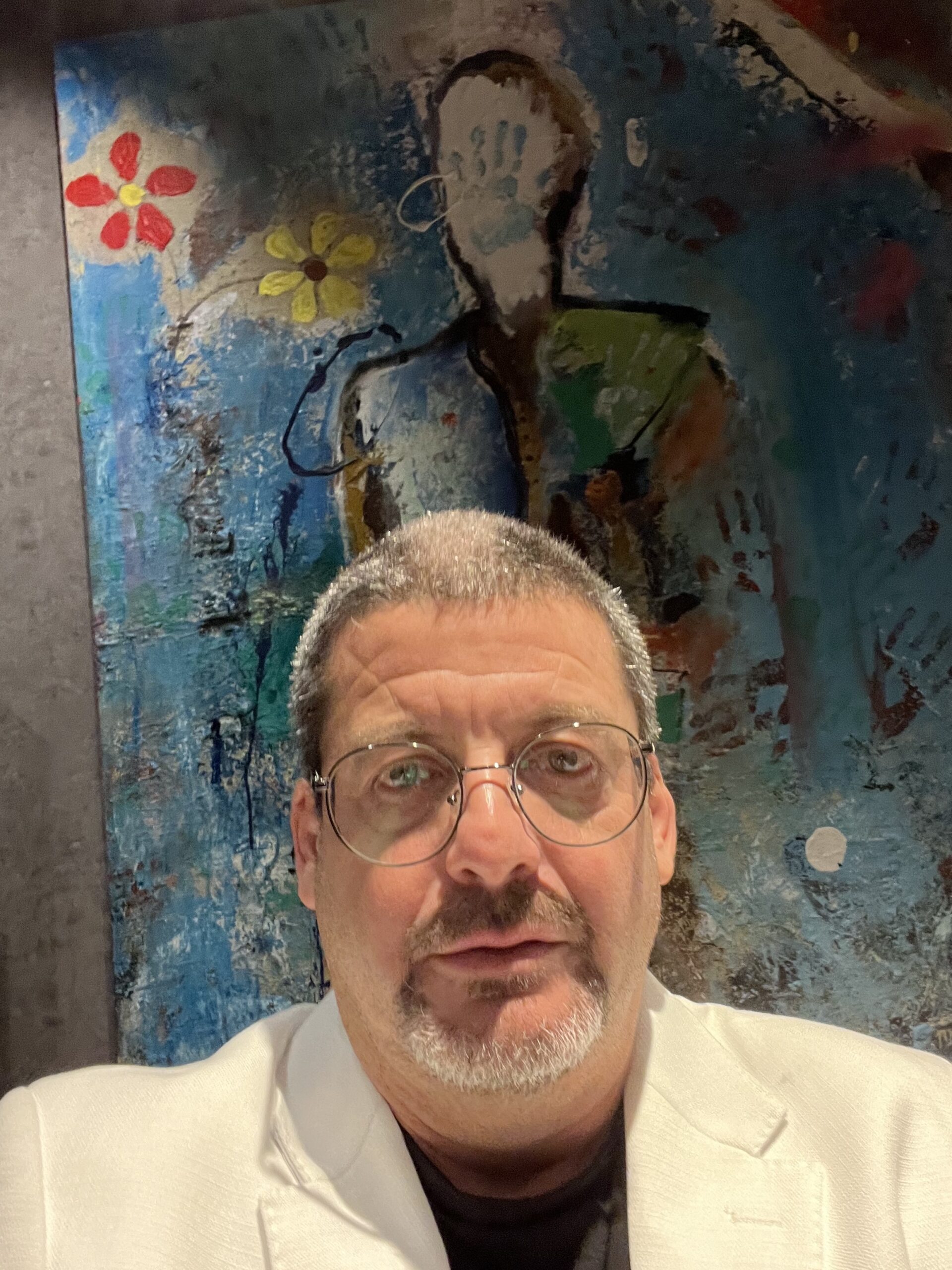 • Juxtaposition: You place these ancient, primal symbols (the hand, the raw figure) within a modern abstract expressionist framework. This creates a fascinating tension and conversation between the ancient human need to create and the self-aware perspective of an artist today.